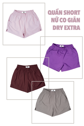 Quần short nữ co giãn dry extra: 04 MÀU MỚI - CÓ màu hồng "đào Tết"!