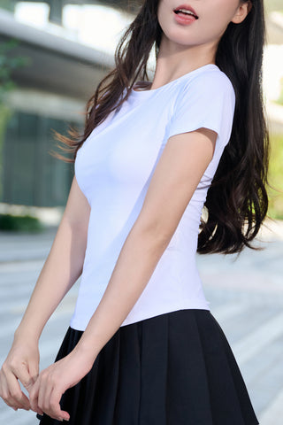 Chất liệu co giãn 4 chiều: Giúp áo ôm nhẹ cơ thể nhưng không gò bó, tăng sự thoải mái tối đa khi mặc. Thiết kế đuôi tôm cách điệu: Mang đến vẻ mềm mại, tinh tế, tôn dáng nhẹ nhàng và tạo điểm nhấn khác biệt. Tay áo raglan: Tăng cường sự linh hoạt cho chuyển động vai, đồng thời mang lại cảm giác năng động, trẻ trung.