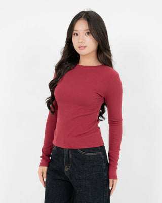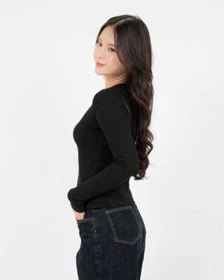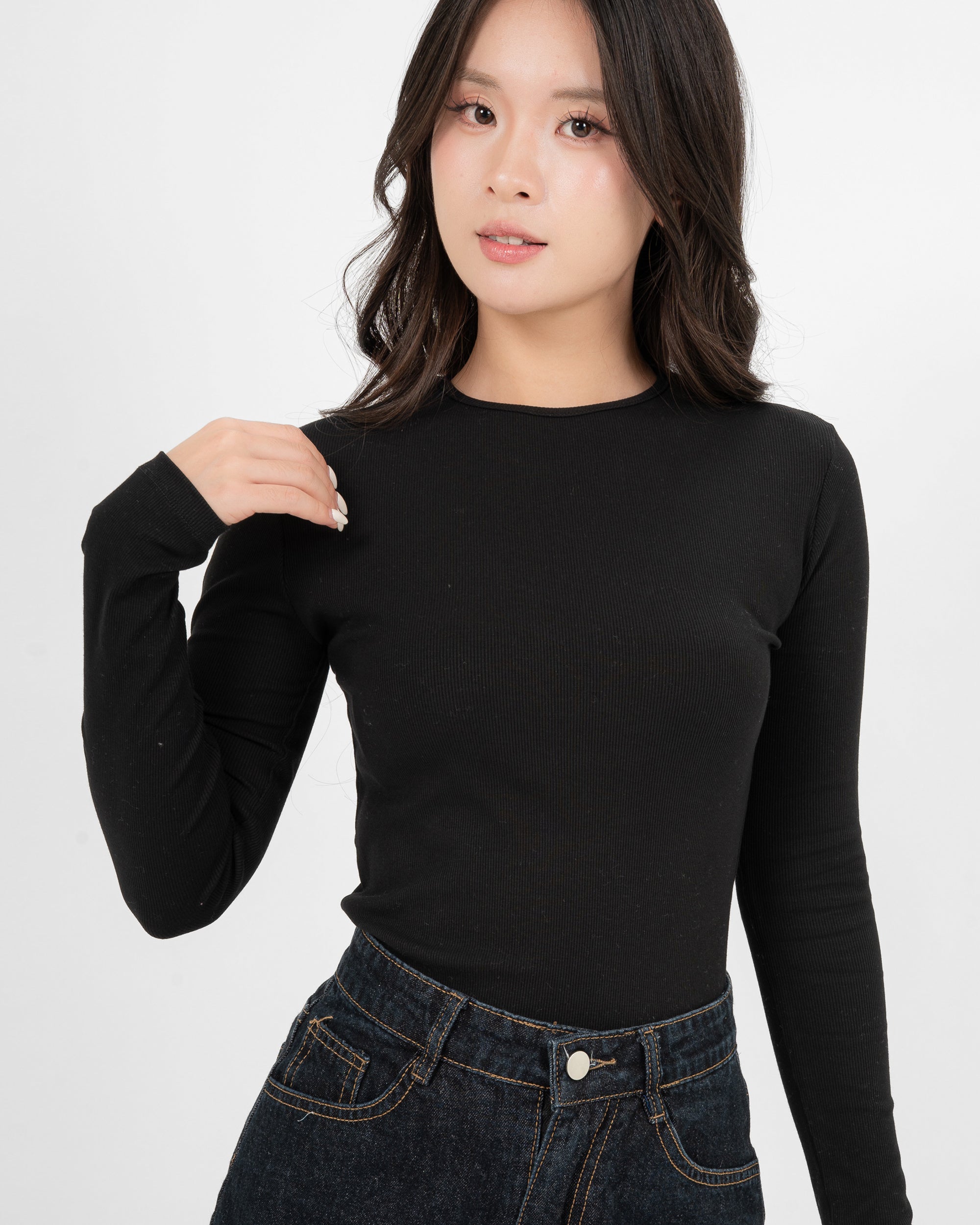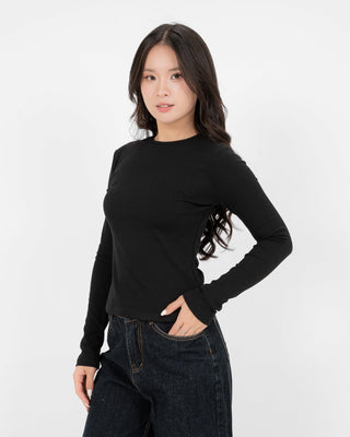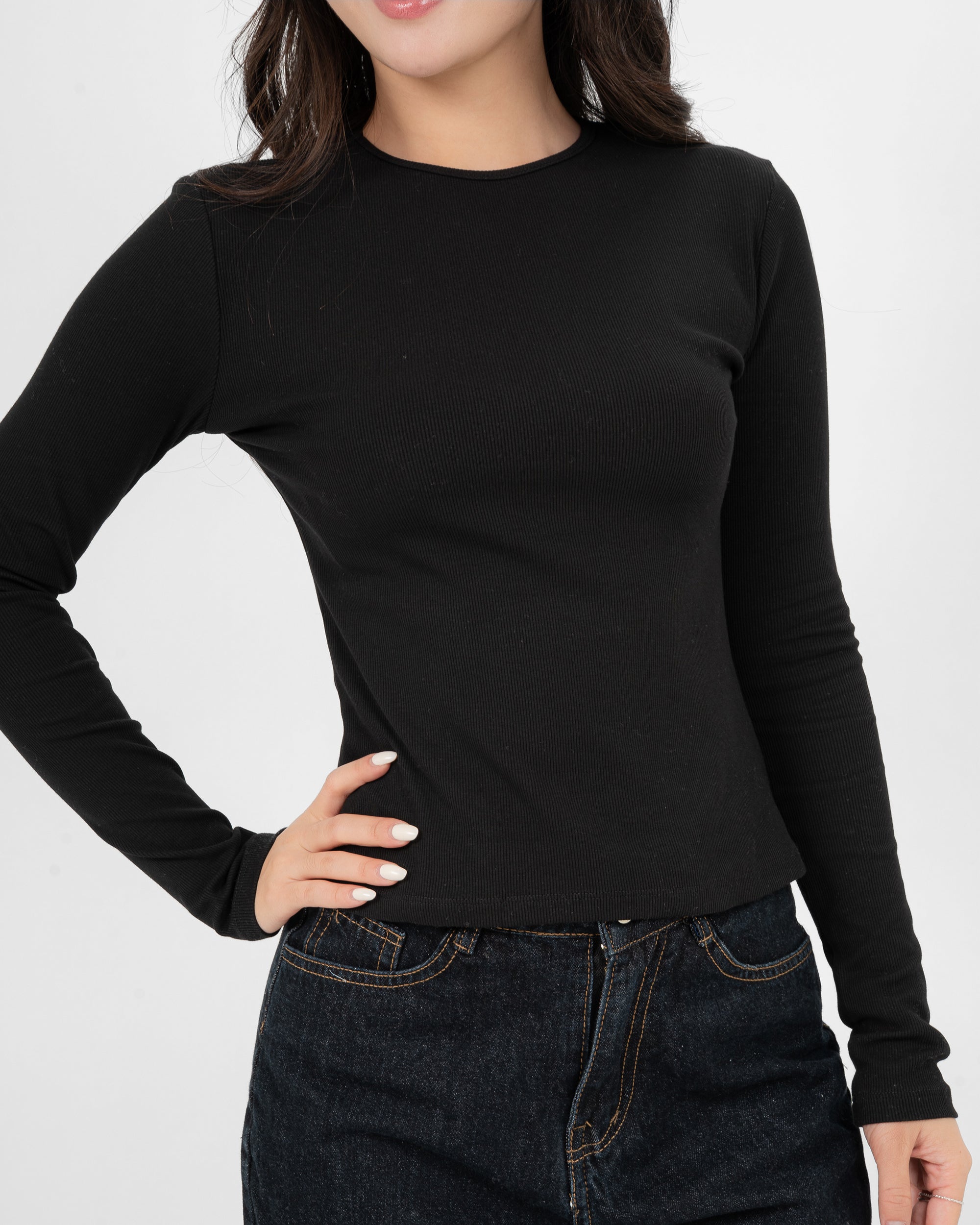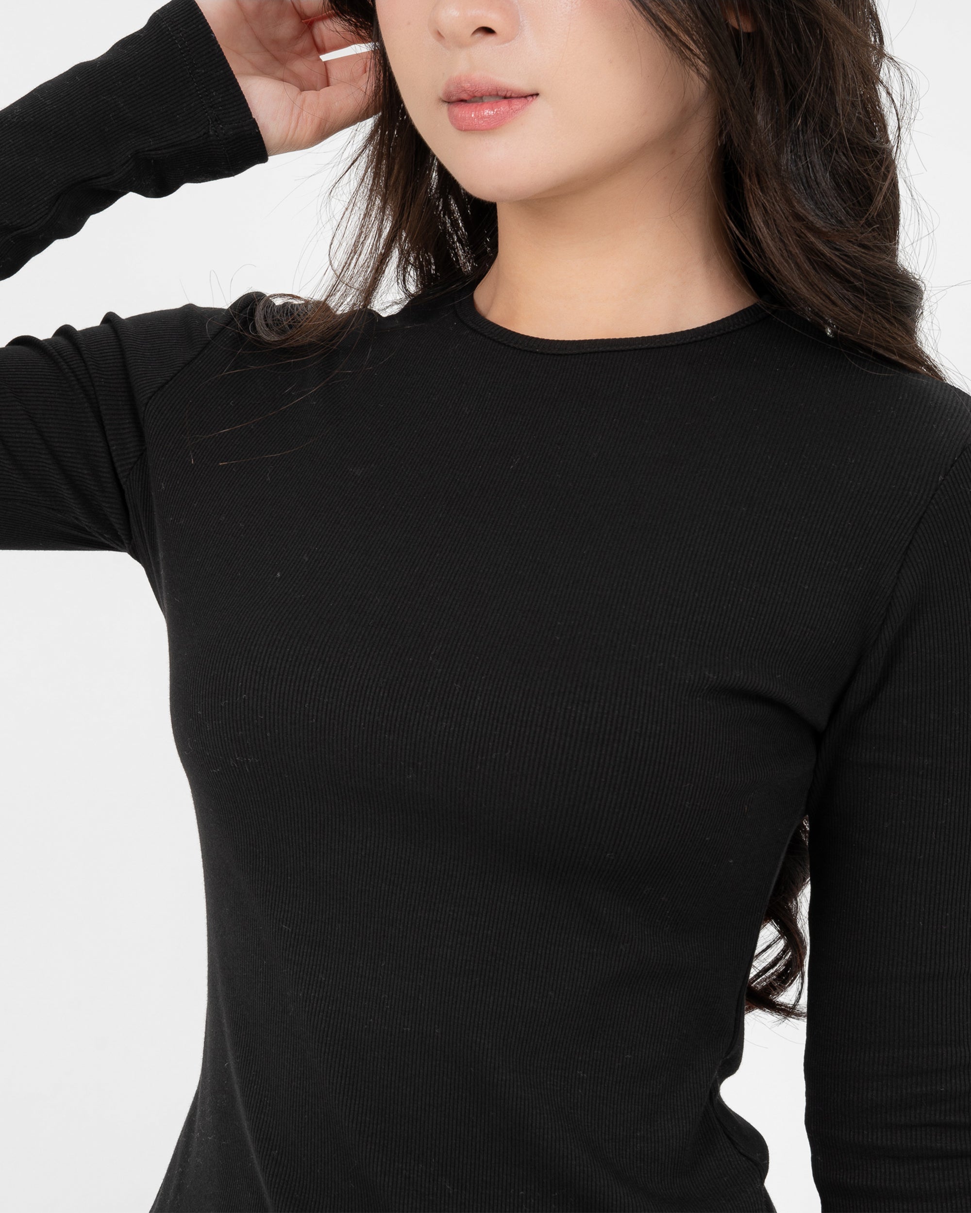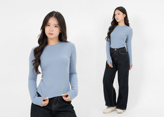 Cotton/Polyester/SpandexÁo Thun Tăm Nữ Dài Tay Co Giãn Cổ Tròn