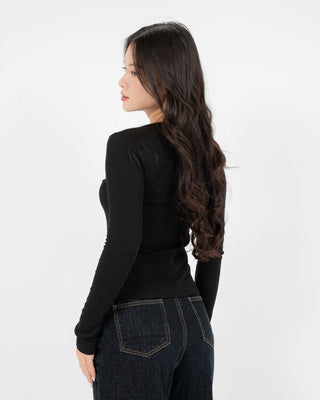 Được thiết kế nhằm tôn vòng 1 với phần bụng điều chỉnh ôm body. Tay áo đủ dài để che một phần mu bàn tay: +1 điểm gợi cảm. Cổ tròn may viền mỏng - chi tiết vô cùng quan trọng khiến gương mặt trở nên cuốn hút.