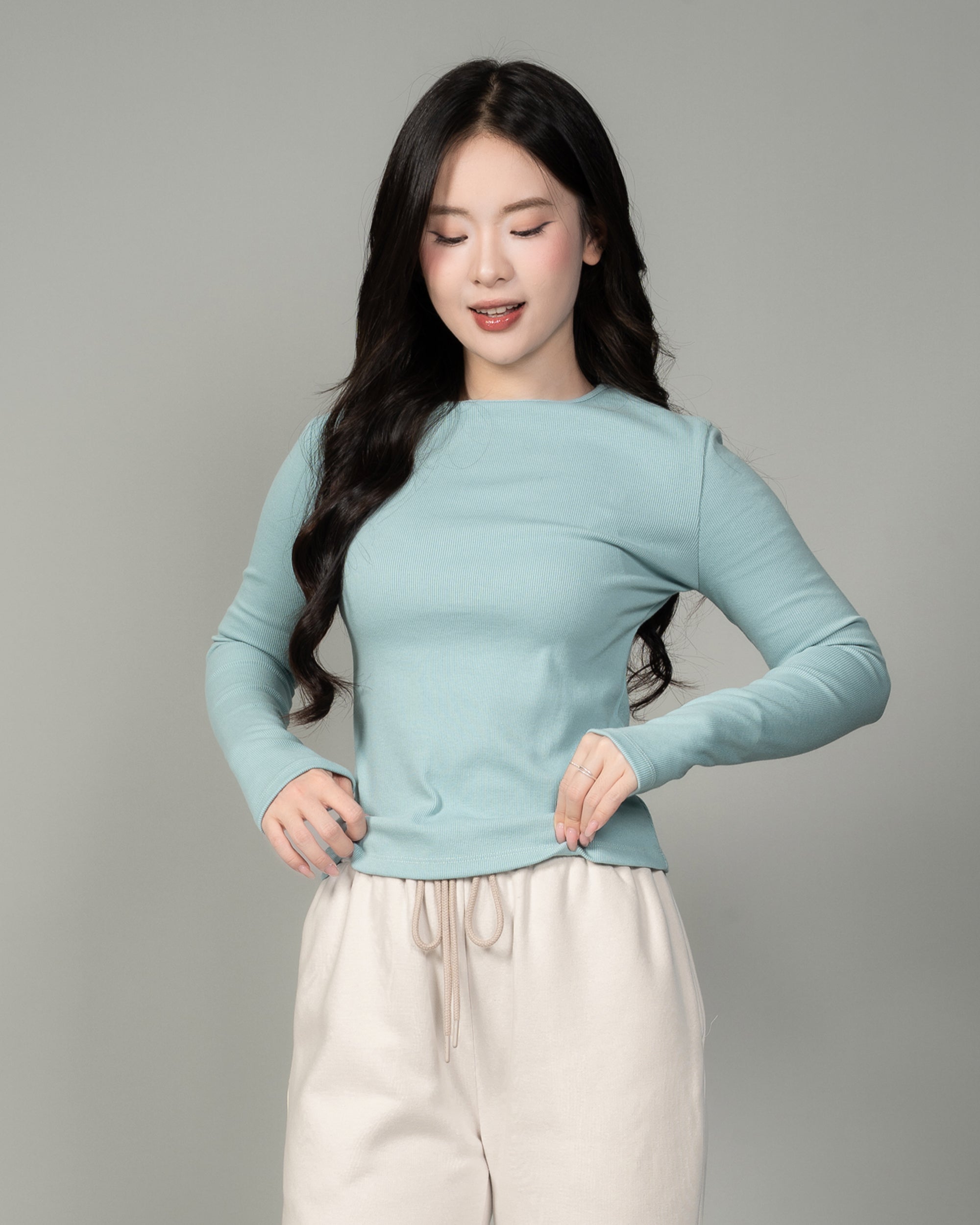 Áo Thun Tăm Nữ Dài Tay Co Giãn Cổ Tròn
