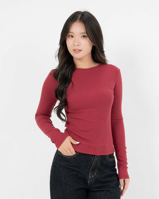 Cotton/Polyester/SpandexÁo Thun Tăm Nữ Dài Tay Co Giãn Cổ Tròn