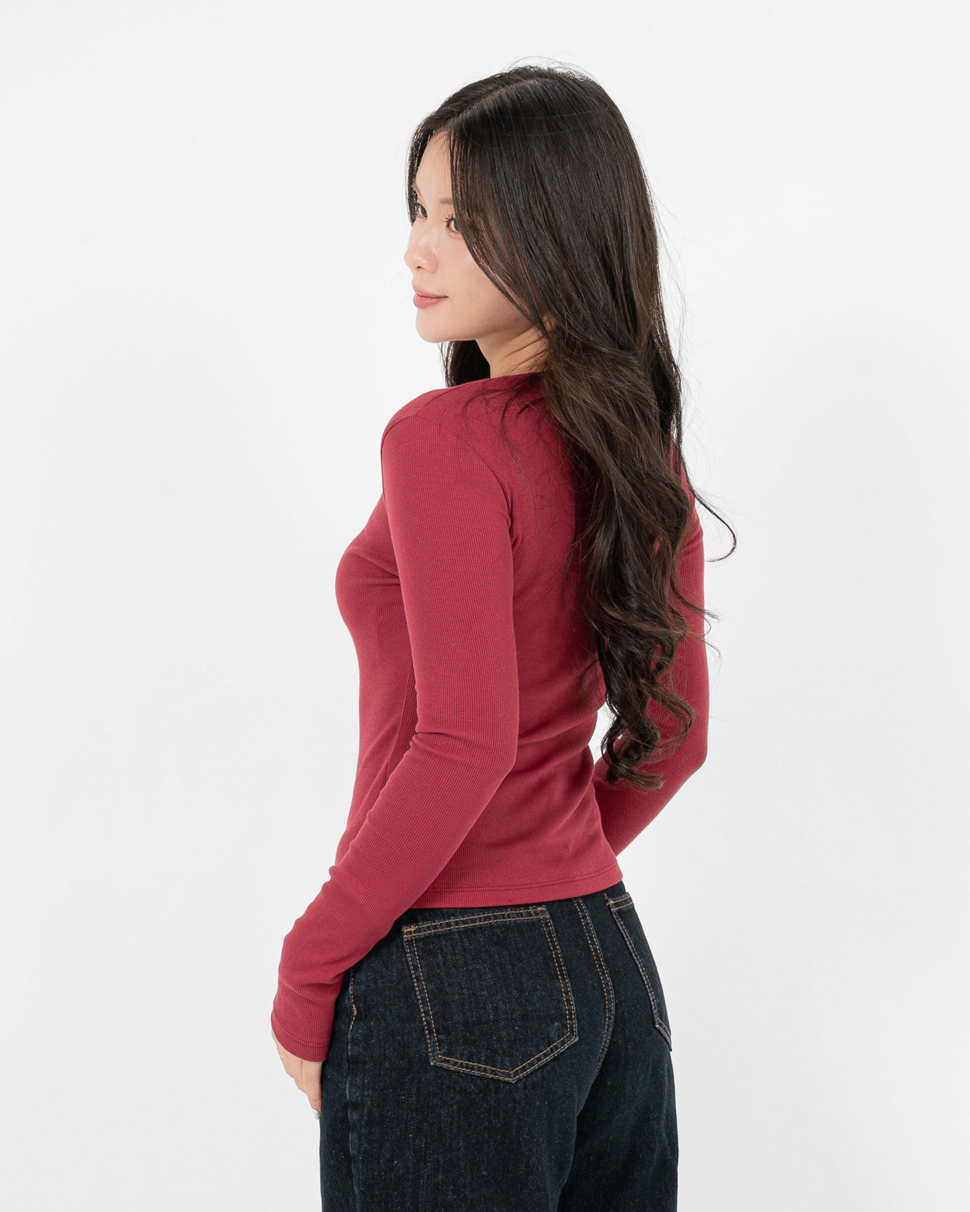 Mặc chiếc áo tăm này vào là tự nhiên thấy lòng nhẹ nhàng, cả người như được ôm ấp bởi một đám mây mềm mại, ấm vừa đủ mà chẳng hề bí. Vải co giãn vuốt ve từng cử động, tay dài dịu dàng chạm vào da, cổ tròn lặng lẽ làm nổi bật khuôn mặt mình xinh hơn hẳn. Cả ngày dài dù bận rộn đến mấy cũng thấy dễ chịu, tự tin và đáng yêu lạ.