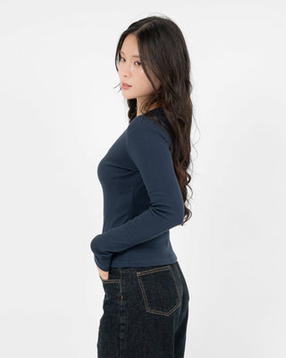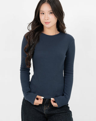 Áo Thun Tăm Nữ Dài Tay Co Giãn Cổ Tròn