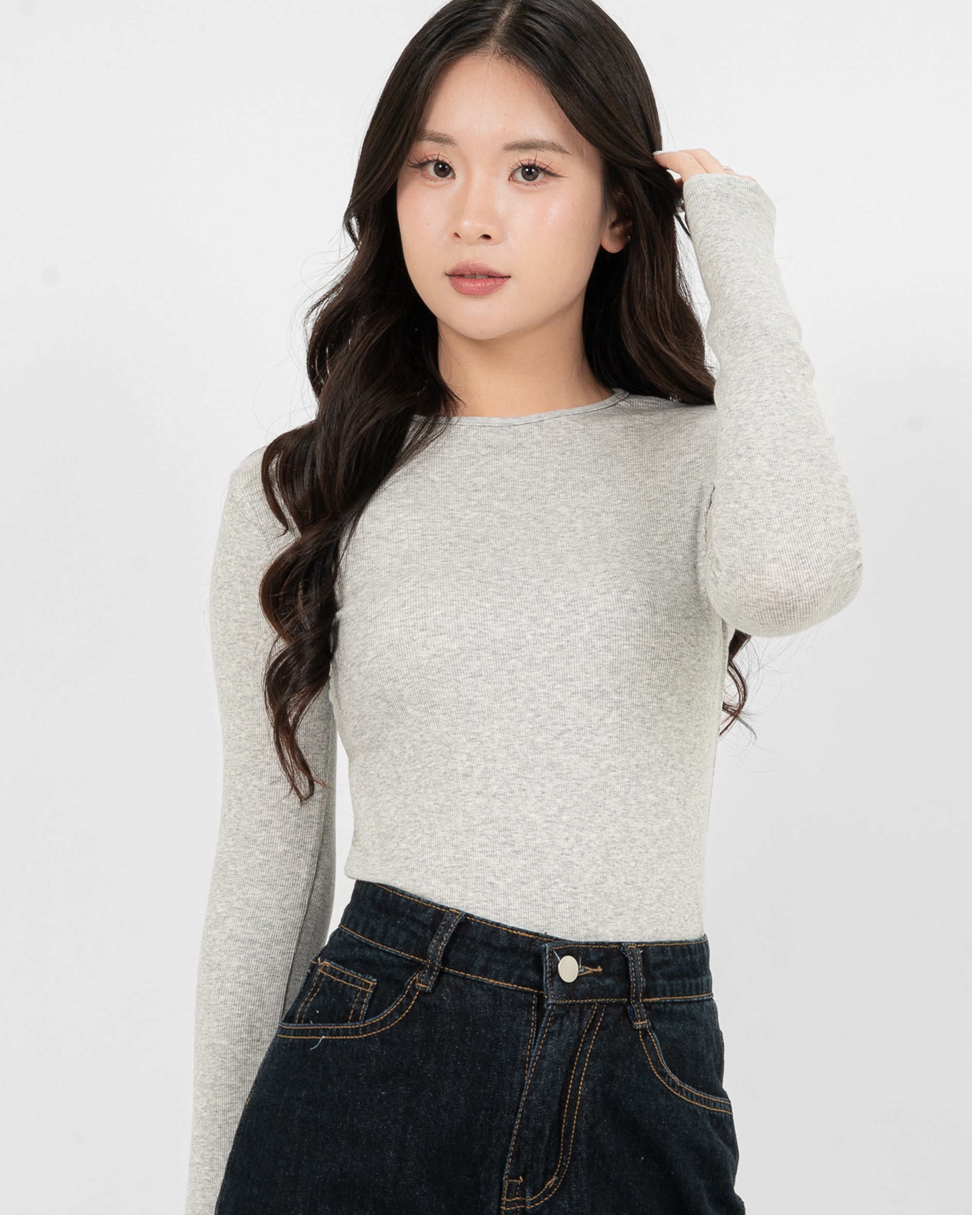 Áo Thun Tăm Nữ Dài Tay Co Giãn Cổ Tròn