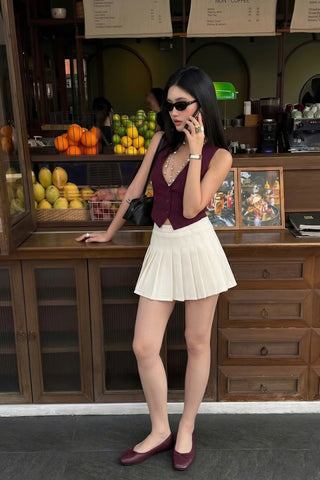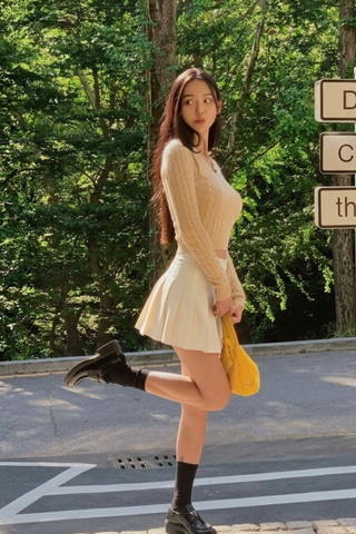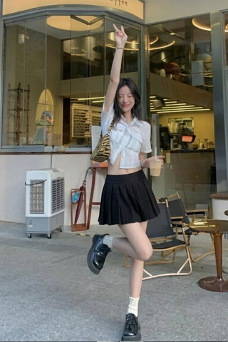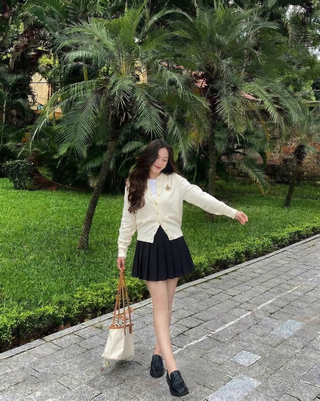"Đa năng" là từ để mô tả chân váy xếp ly này: Vải co giãn, hút ẩm tốt / Có 2 túi như túi quần (nhưng không phá đi sự chỉnh chu của các ly váy) / Có quần bảo hộ kín đáo / Lưng chun phía sau giúp nới thêm bụng, nhưng cạp váy phía trước phẳng để vẫn "ra chất" / Khóa kéo bên hông tiện lợi.