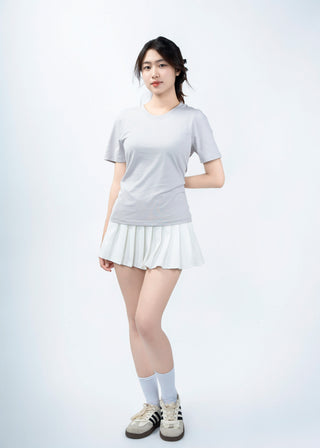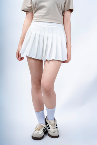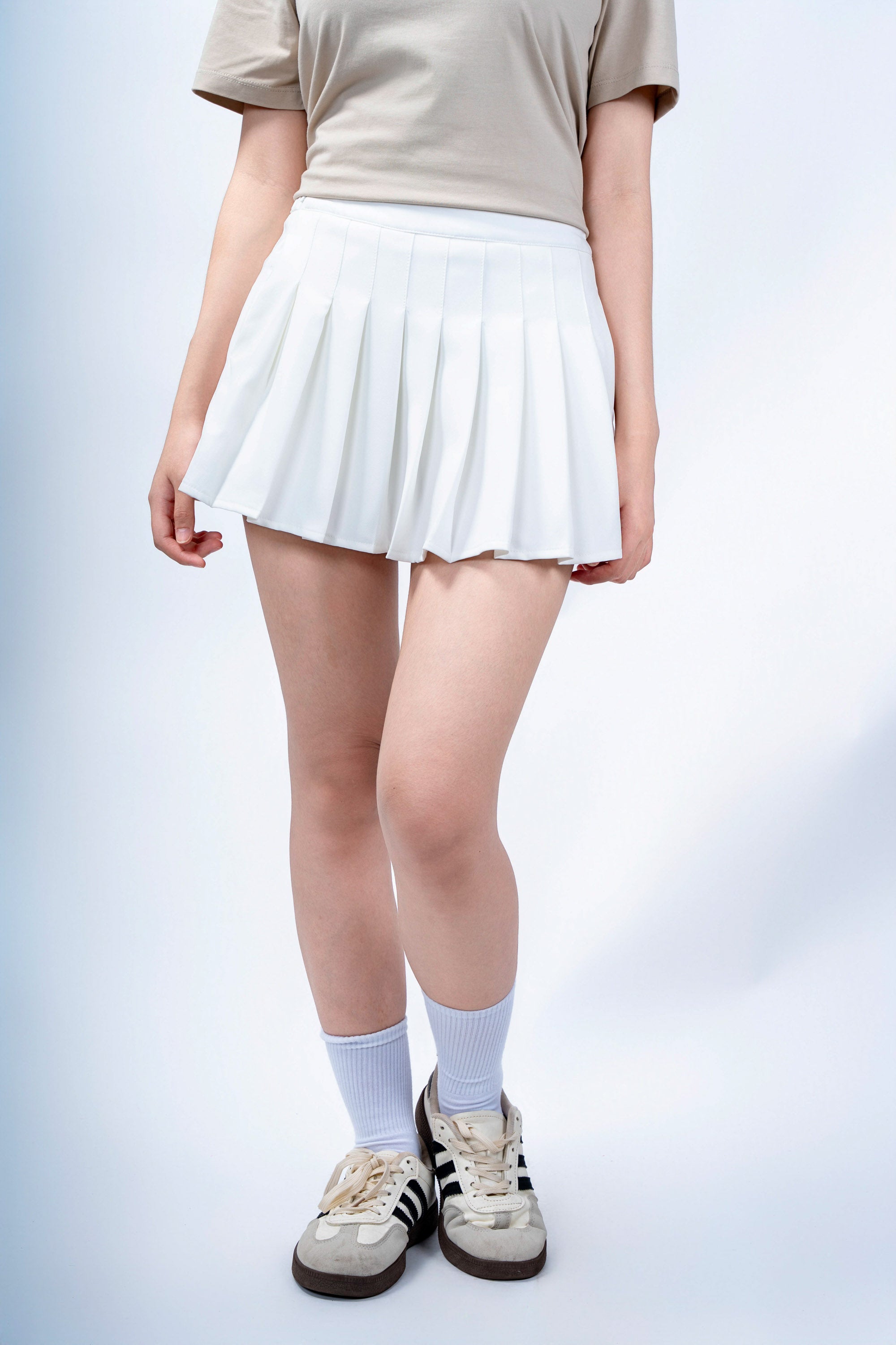 "Đa năng" là từ để mô tả chân váy xếp ly này: Vải co giãn, hút ẩm tốt / Có 2 túi như túi quần (nhưng không phá đi sự chỉnh chu của các ly váy) / Có quần bảo hộ kín đáo / Lưng chun phía sau giúp nới thêm bụng, nhưng cạp váy phía trước phẳng để vẫn "ra chất" / Khóa kéo bên hông tiện lợi.