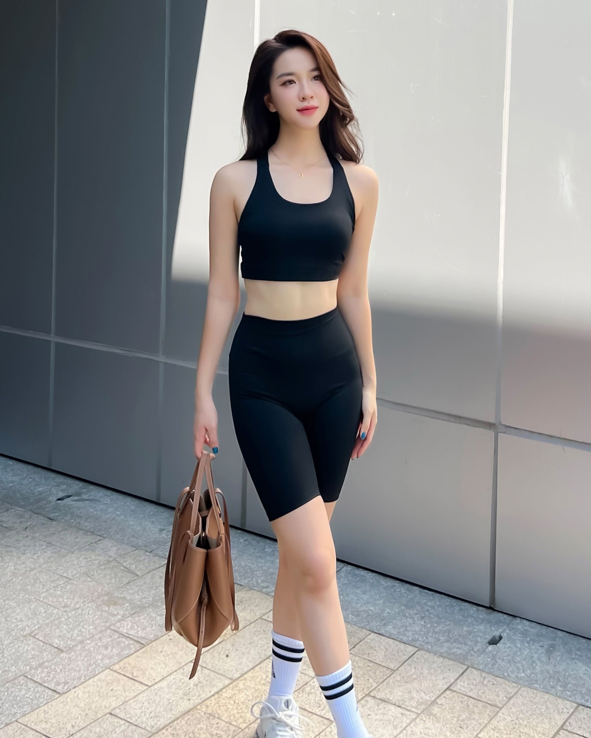 • Hỗ-Trợ-Vừa (Medium Support): Vải dày dặn hơn, có độ siết vừa phải, giữ 'mọi thứ' không xô lệch, 'tôn dáng' nhất vì có hiệu ứng đẩy các số đo đầy đặn hơn. Phù hợp Yoga, Gym, miễn cưỡng mặc hàng ngày vẫn được.