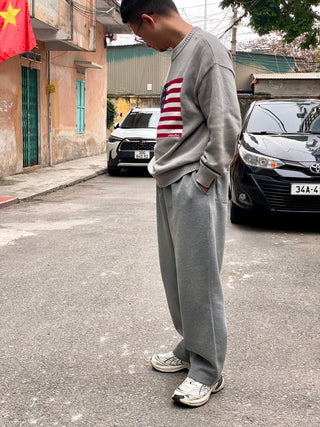 Quần nỉ unisex ống rộng với chất liệu nỉ BC dày dặn, thiết kế rộng rãi