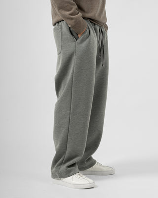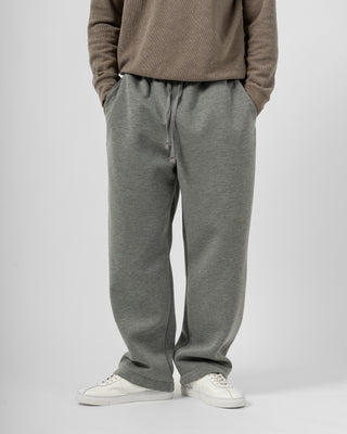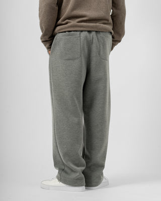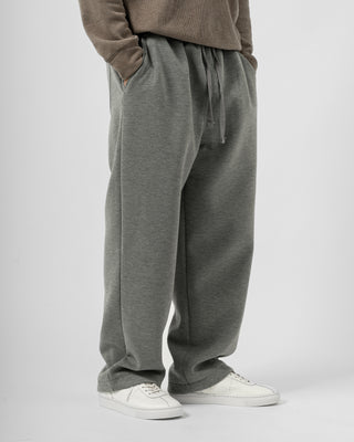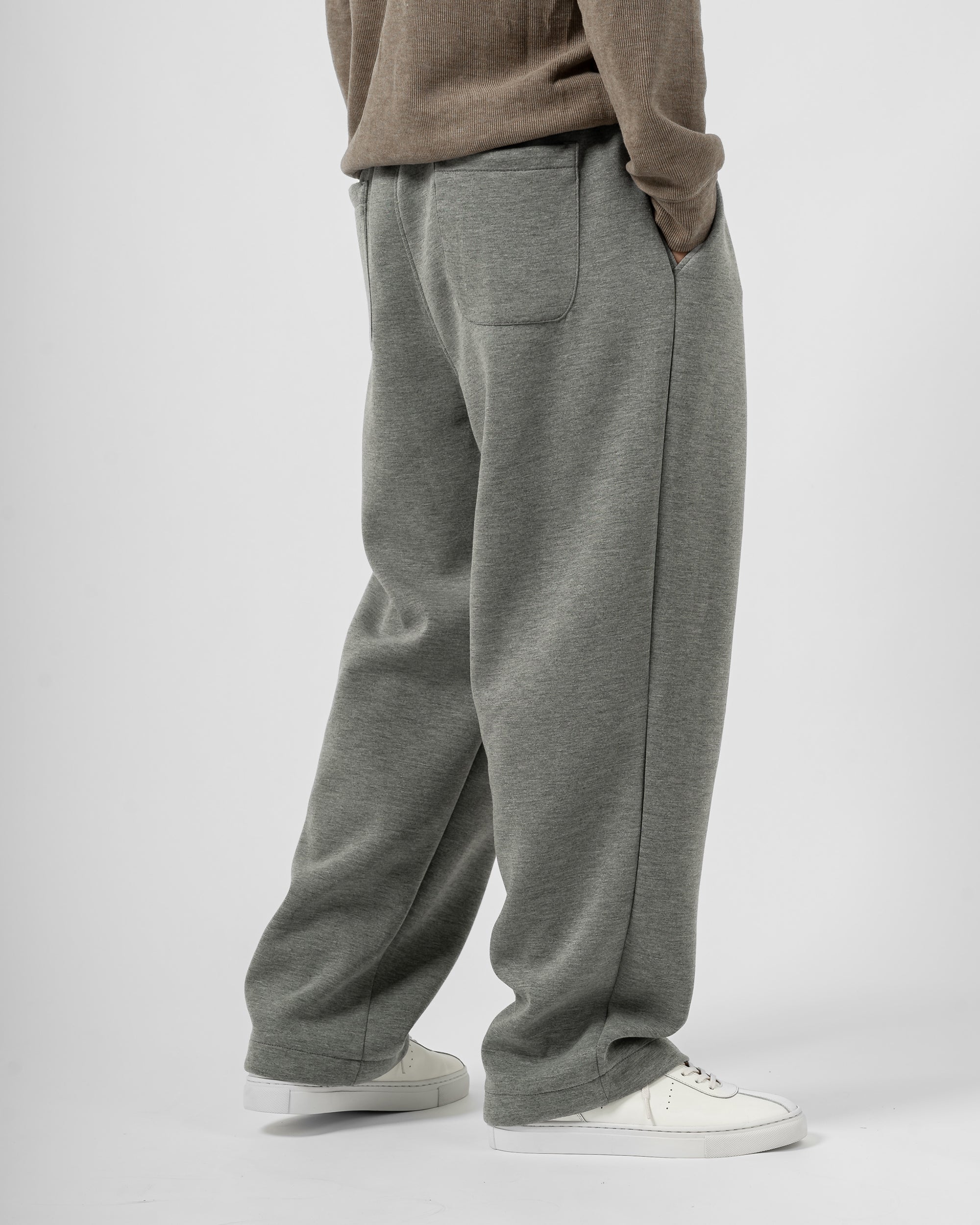 Quần nỉ dáng rộng từ chất liệu nỉ hai mặt (nỉ BC) dày dặn với độ dày 300gsm, mặc được cả mùa thu đông lẫn mùa hè. Form dáng rộng rãi, năng động, kết hợp cạp chun và gấu quần có dây siết buộc được để trở thành một chiếc jogger khi cần thiết.