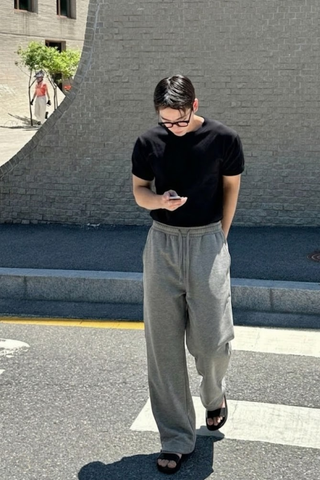 Quần nỉ dáng rộng từ chất liệu nỉ hai mặt (nỉ BC) dày dặn với độ dày 300gsm, mặc được cả mùa thu đông lẫn mùa hè. Form dáng rộng rãi, năng động, kết hợp cạp chun và gấu quần có dây siết buộc được để trở thành một chiếc jogger khi cần thiết.