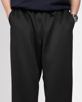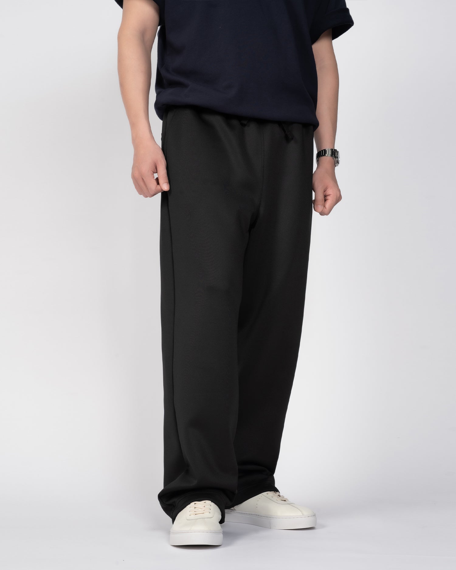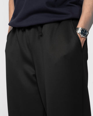 Quần nỉ dáng rộng từ chất liệu nỉ hai mặt (nỉ BC) dày dặn với độ dày 300gsm, mặc được cả mùa thu đông lẫn mùa hè. Form dáng rộng rãi, năng động, kết hợp cạp chun và gấu quần có dây siết buộc được để trở thành một chiếc jogger khi cần thiết.