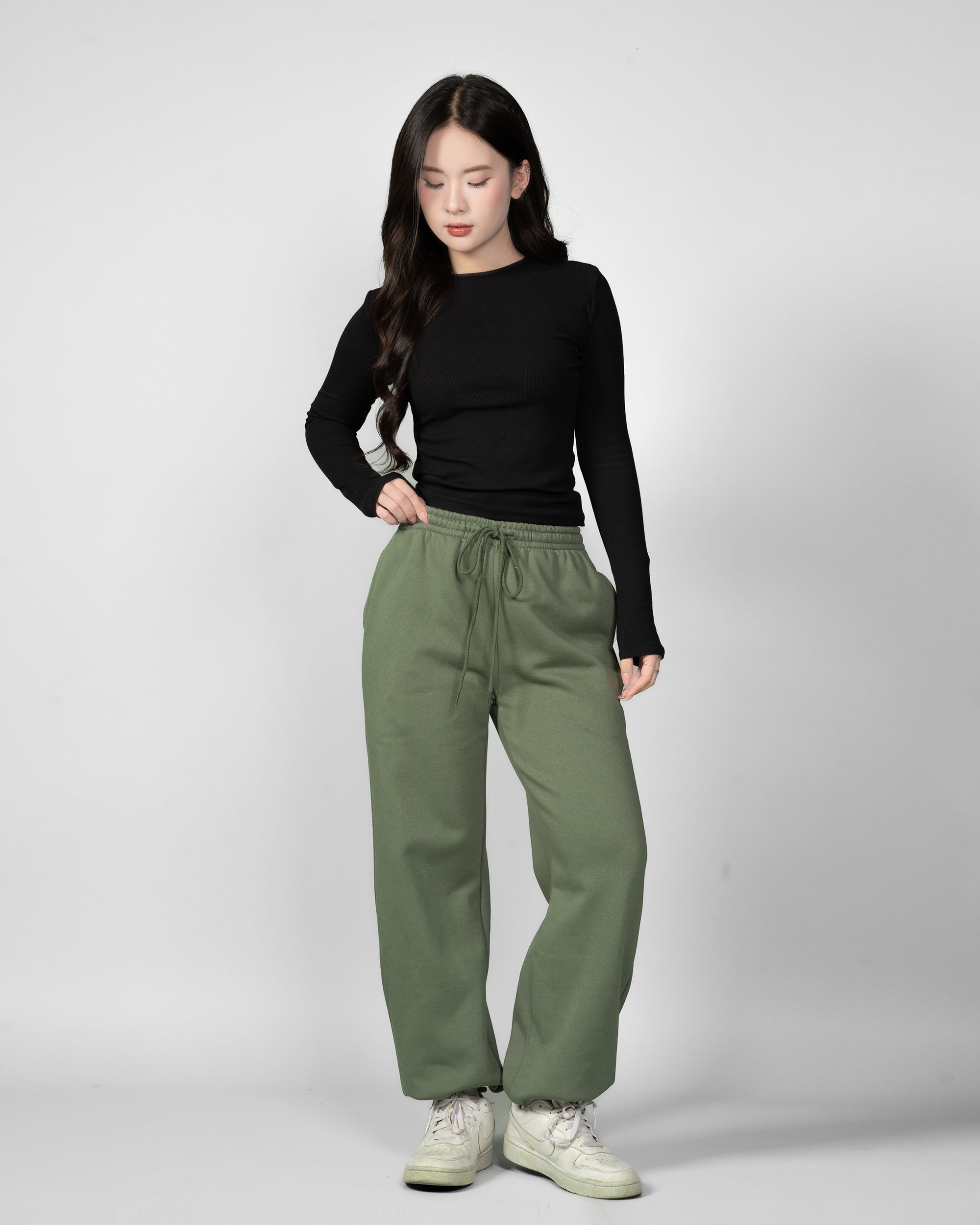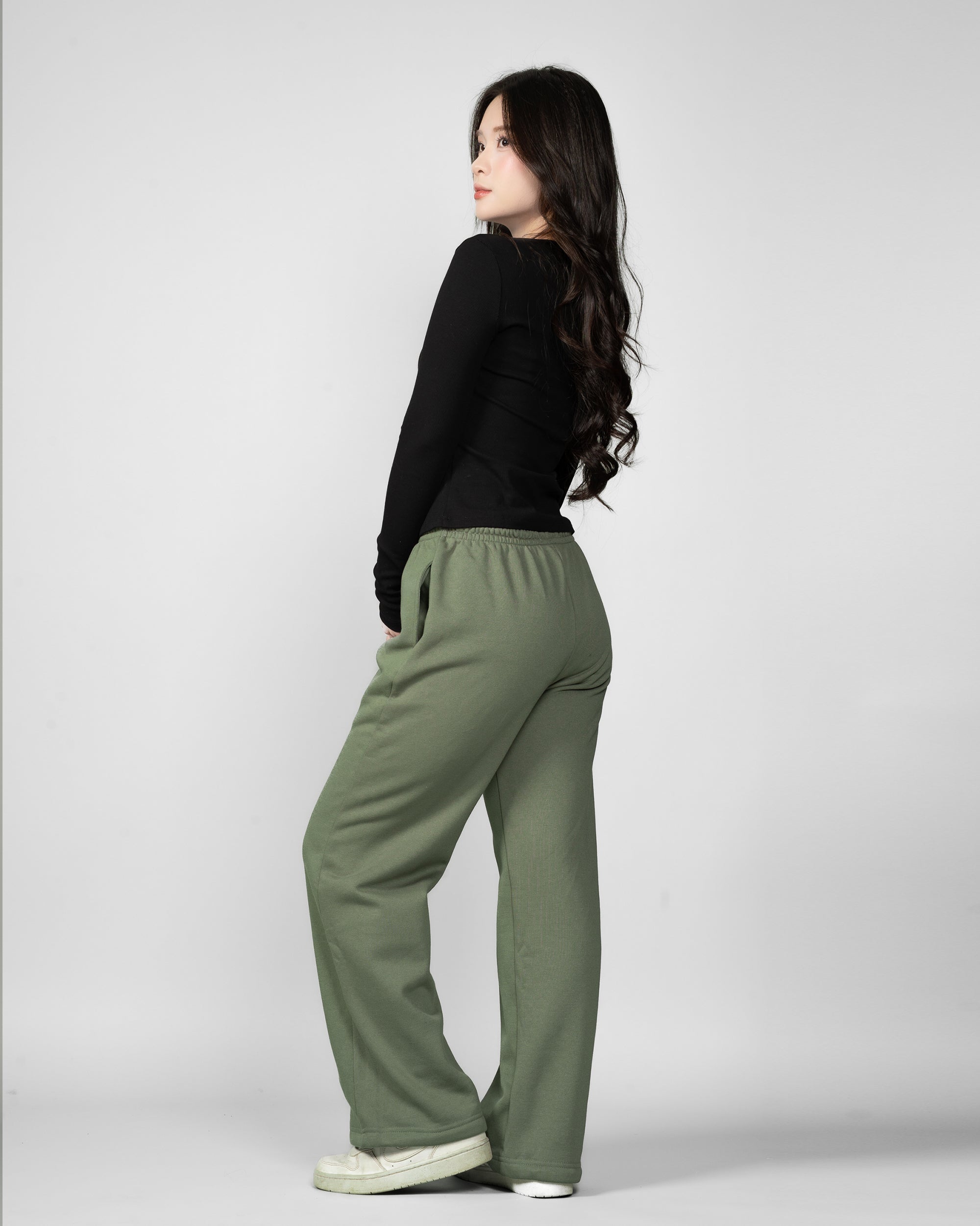Bên cạnh ống rộng chuẩn xu hướng, vải nỉ bông ấm áp cho mùa Thu Đông, WMBB Athleisure còn đặc biệt điều chỉnh vô cùng kỹ nhằm tôn vòng 3 theo cách thật cuốn hút: Vừa ôm đủ để 'khoe chút', nhưng không được phá đi tổng thể ADN của 1 chiếc quần dáng rộng.