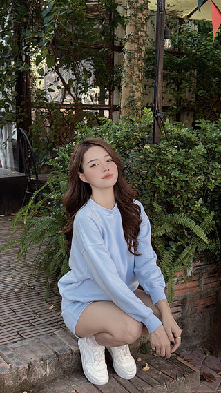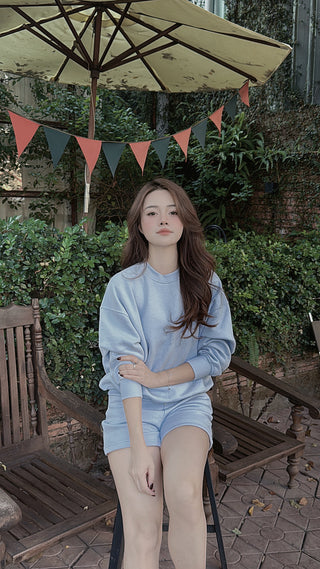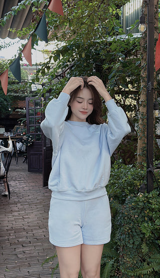 Set Áo Nỉ Nữ Dáng Rộng + Quần Short Nỉ Nữ