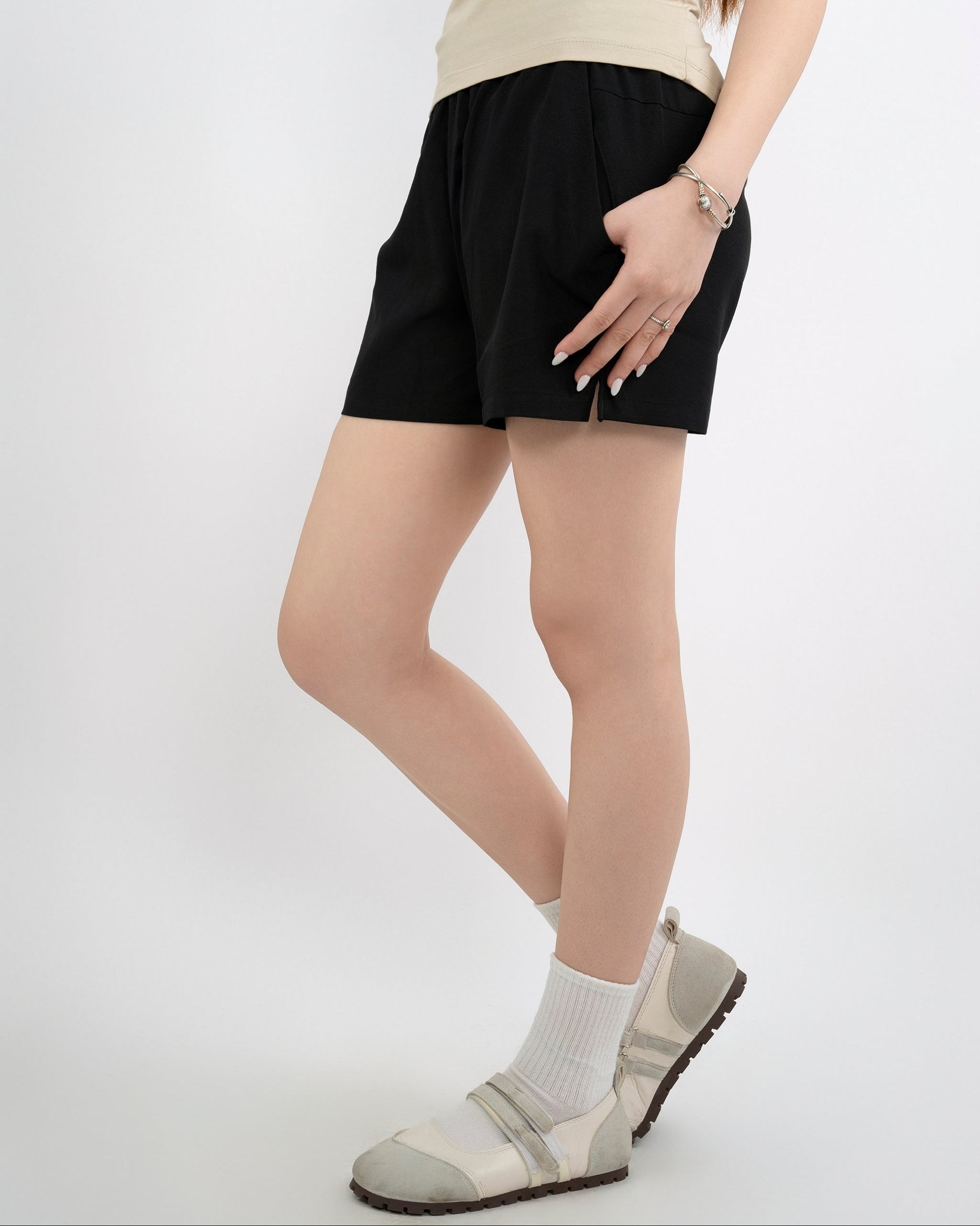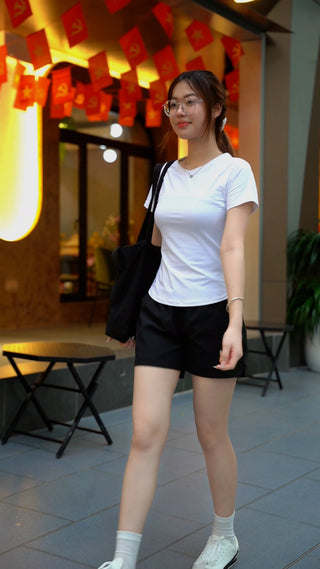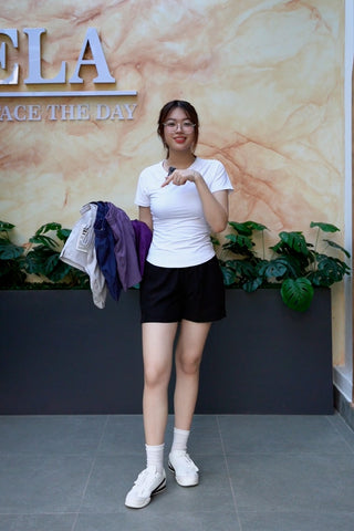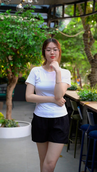 Quần short cạp chun nữ mang đến sự thoải mái tối đa với chất liệu co giãn, thoáng mát, thấm mồ hôi và khô nhanh, lý tưởng cho mọi hoạt động từ đi chơi đến tập luyện. Thiết kế ngắn gọn với đường viền góc cạnh cho phép di chuyển linh hoạt, cạp chun bên trong cùng dây rút điều chỉnh hoàn hảo và túi khóa giọt lệ tiện lợi, dễ phối với áo thun hay crop top.