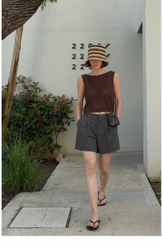 Two-tuck (hai ly) tăng tính kiểu cách. Đỉa quần (belt loop) để đeo dây lưng khi sơ vin với áo có cổ. Lưng chun để mặc thoải mái khi không sơ vin. Chất vải co giãn, trượt nước nhẹ tăng tính linh hoạt.
