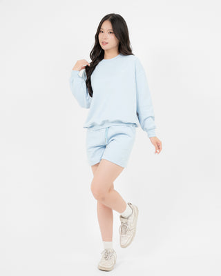 Cotton/Polyester/SpandexSet Áo Nỉ Nữ Dáng Rộng + Quần Short Nỉ Nữ